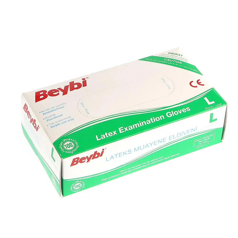 | Etiketler | Beybi Large ( Büyük Boy ) Latex Pudralı Muayne Eldiveni 100'lü Paket |