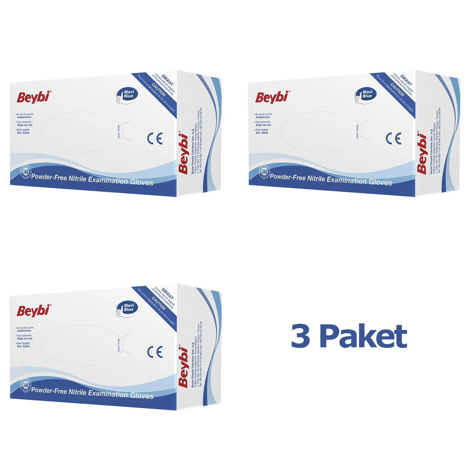 | Etiketler | Beybi Small Mavi Nitril Pudrasız Latex İş Temizlik Steril Muayne Eldiveni - 100'lü 3 Paket |