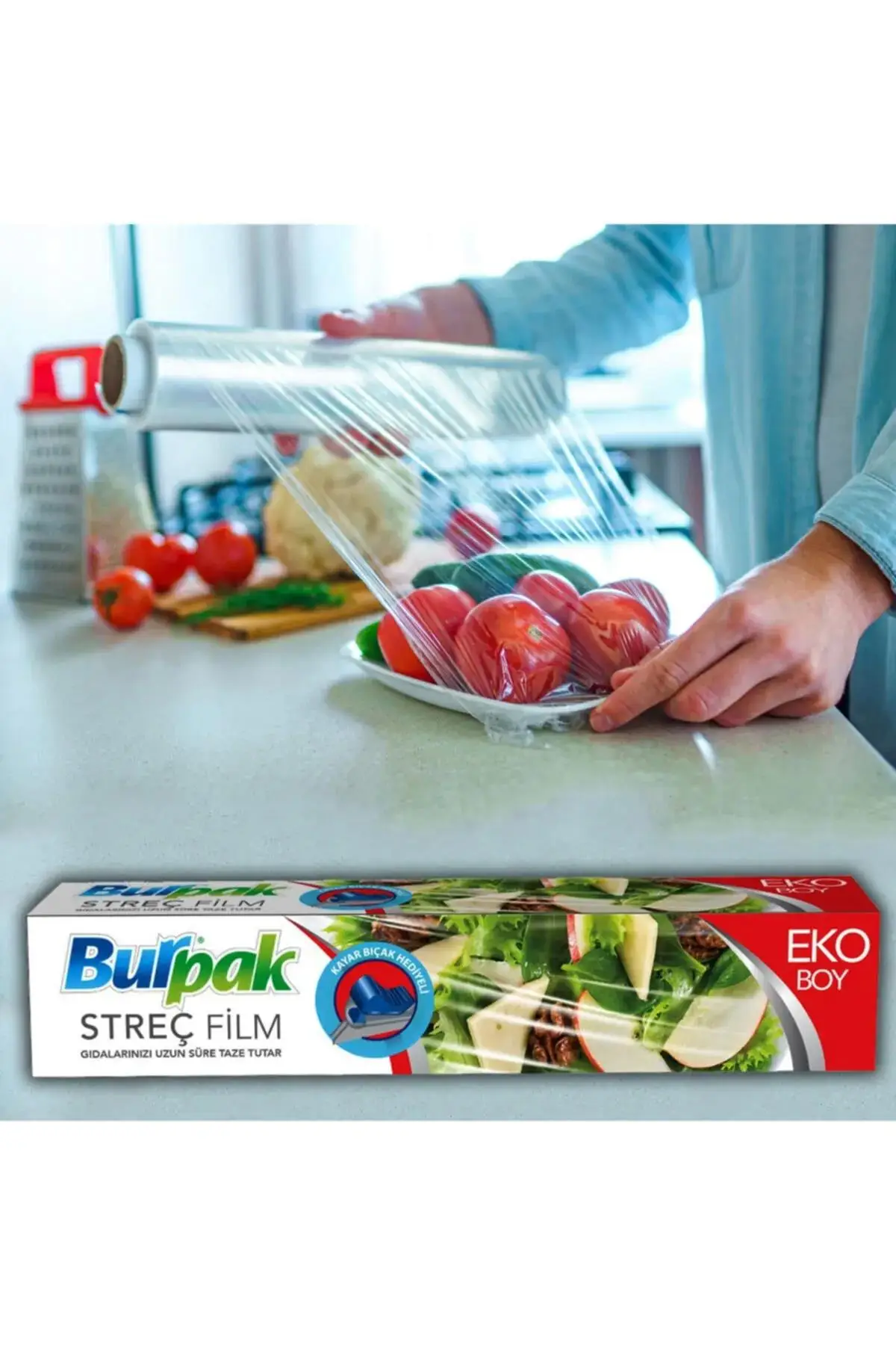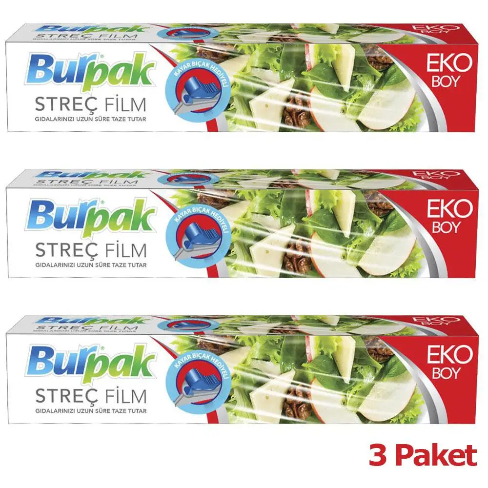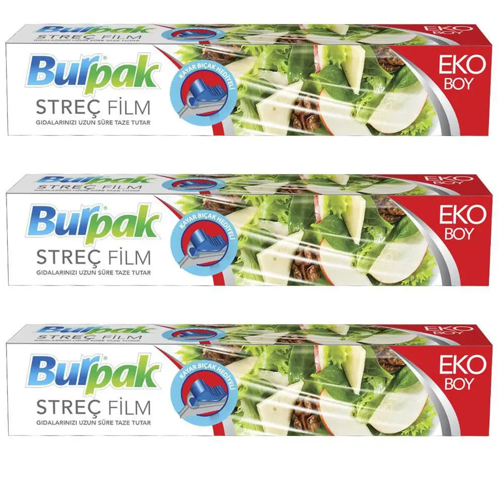 | Etiketler | Burpak Eko Şeffaf Mutfak Rulo Streç Film Folyo - 45 Cm. x 166 Metre - 9.5 Mikron - Gıdaya Uygun - 3 Paket |