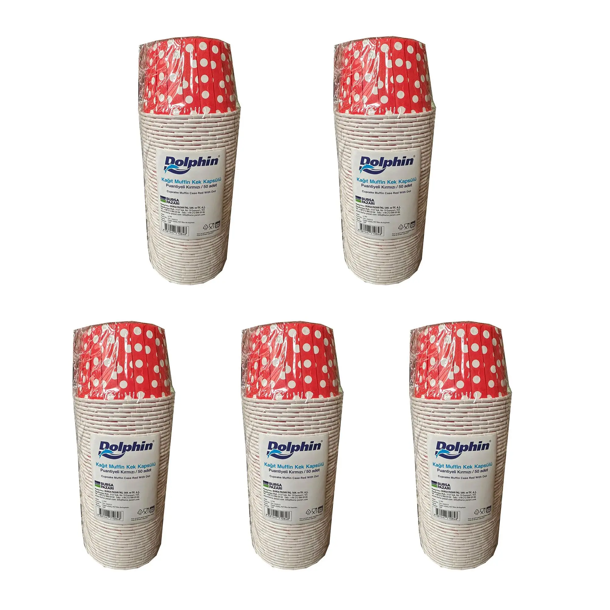 | Etiketler | Dolphin Muffin Kağıt Karton Kırmızı Puantiyeli Cupcake Kek Kalıbı Kapsülü Kabı - 50 Adetlik 5 Paket |