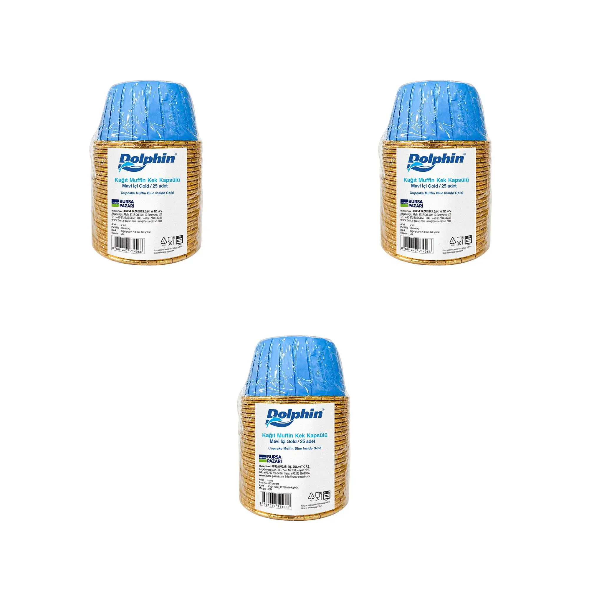 | Etiketler | Dolphin Muffin Kağıt Karton Mavi Altın Cupcake Kek Kalıbı Kapsülü Kabı - 25 Adetlik 3 Paket |