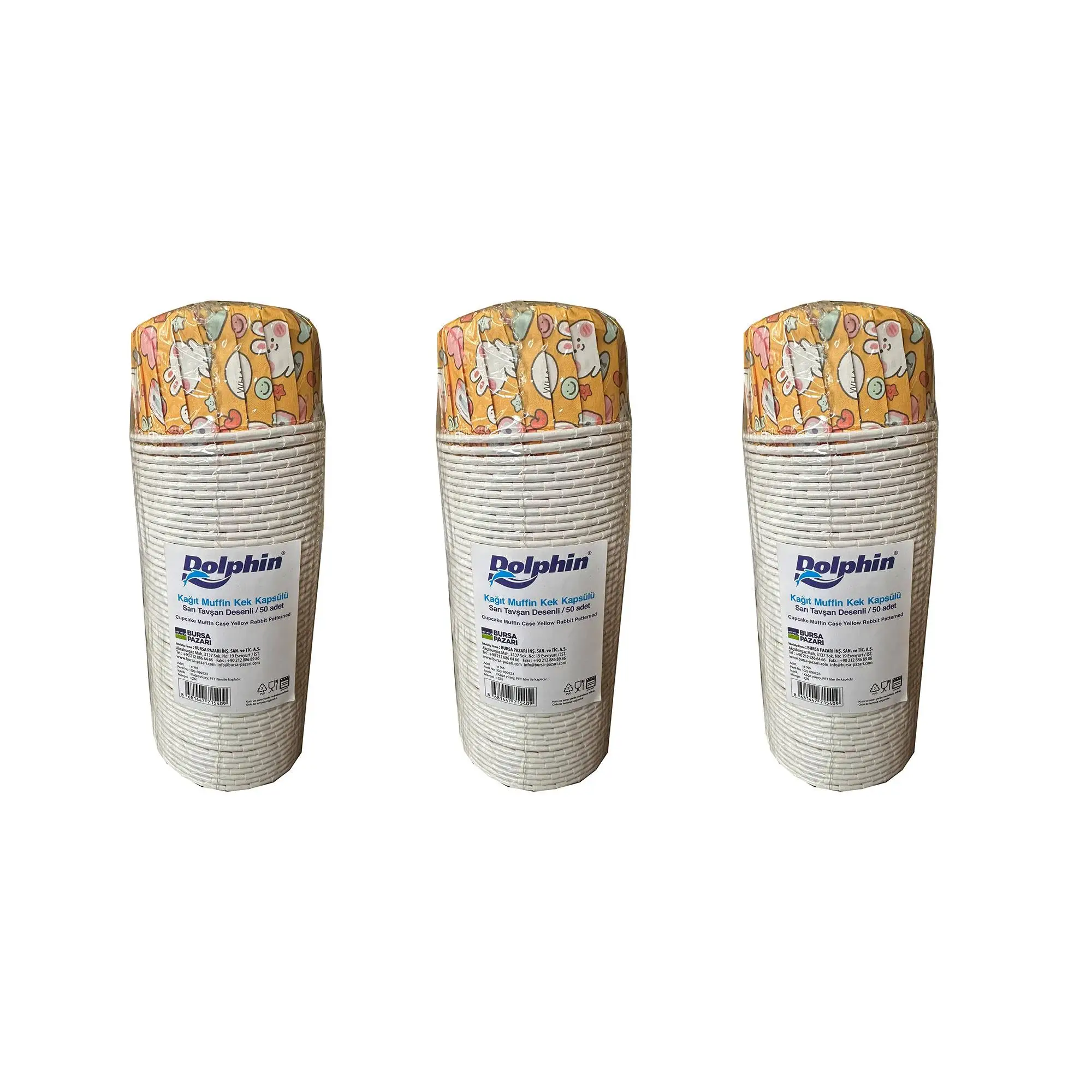 | Etiketler | Dolphin Muffin Kağıt Karton Tavşanlı Sarı Cupcake Kek Kalıbı Kapsülü Kabı - 50 Adetlik 3 Paket |