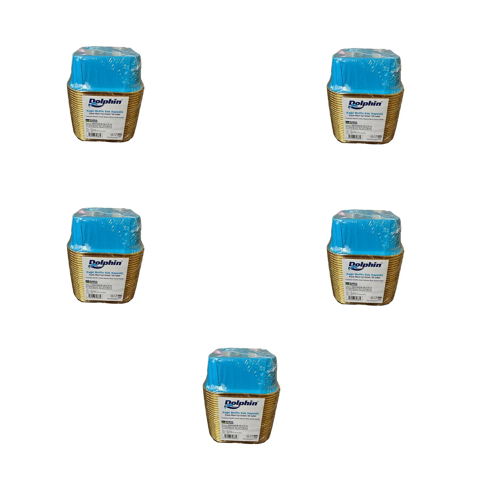 | Etiketler | Dolphin Muffin Kare Kağıt Mavi Altın Cupcake Kek Kalıbı Kapsülü Kabı - 25 Adetlik 5 Paket |