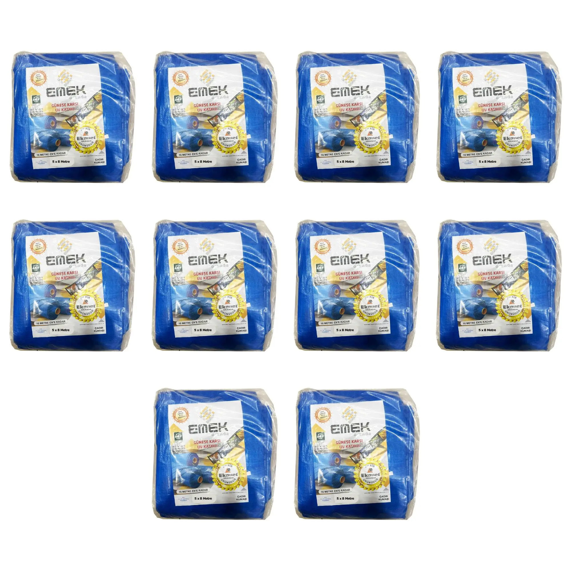 | Etiketler | Emek Çadır Kumaşı Branda Tente UV Güneşlik Gölgelik Koruma Yağmur Su Geçirmez - 5x8 Metre - 10 Paket |
