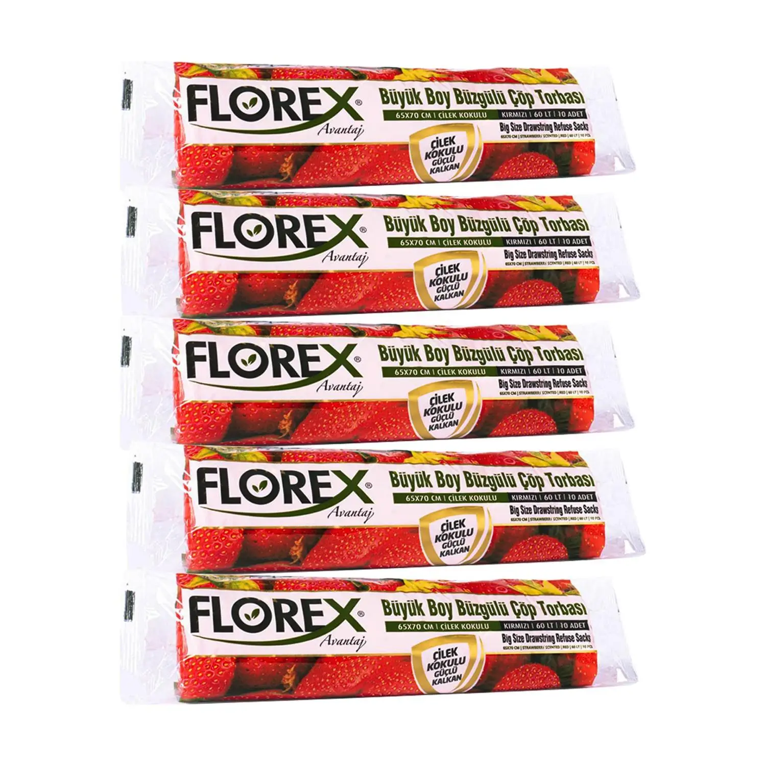 | Etiketler | Florex 60 Litre Büzgülü Çilek Kokulu Çöp Torbası Poşeti / 65 x 70 Cm. - 10x5 Rulo / Paket |