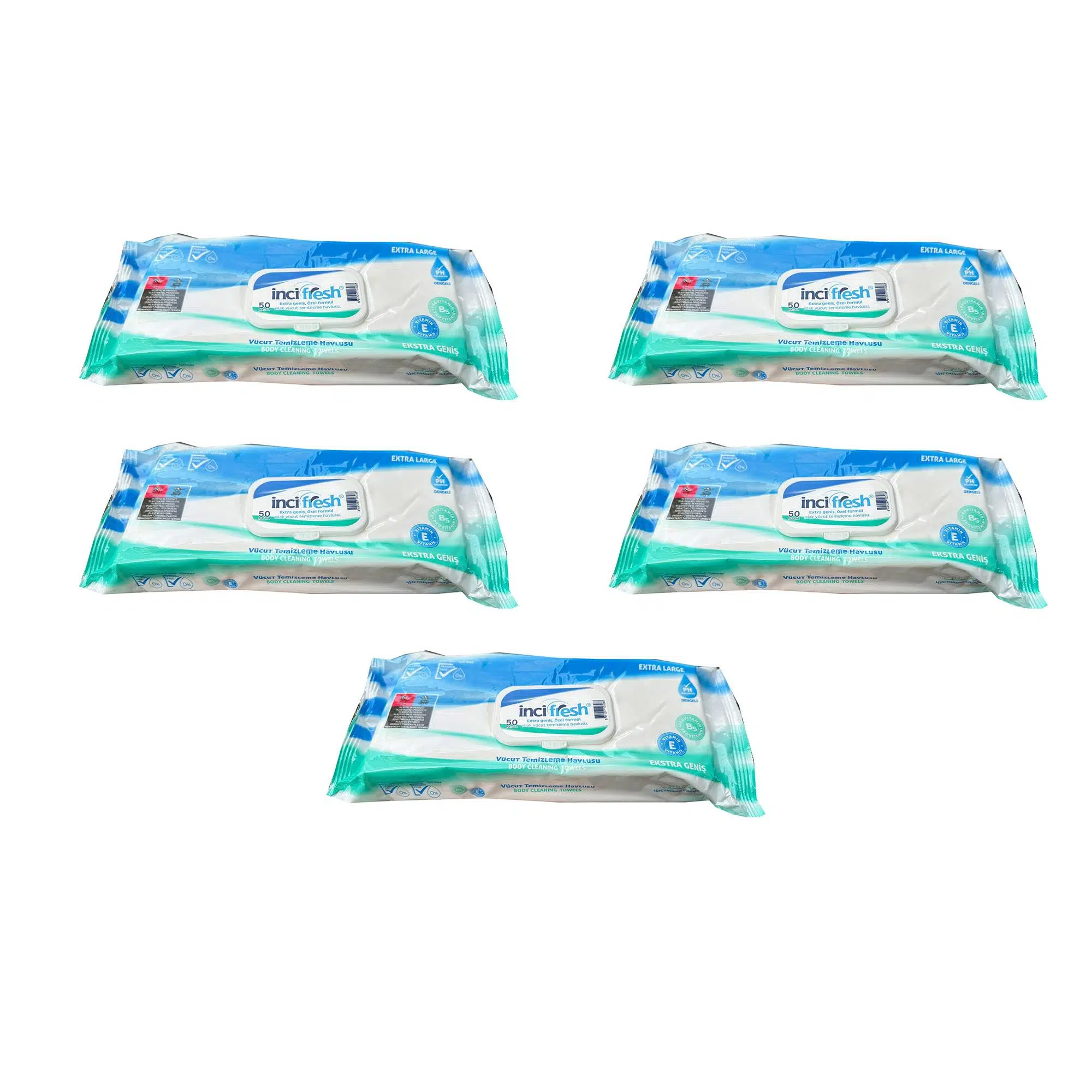 | Etiketler | İnci Fresh Islak Vücut Temizleme Havlusu Mendil - Vitamin E + B5 - Parabensiz - 50 Adetlik 5 Paket |