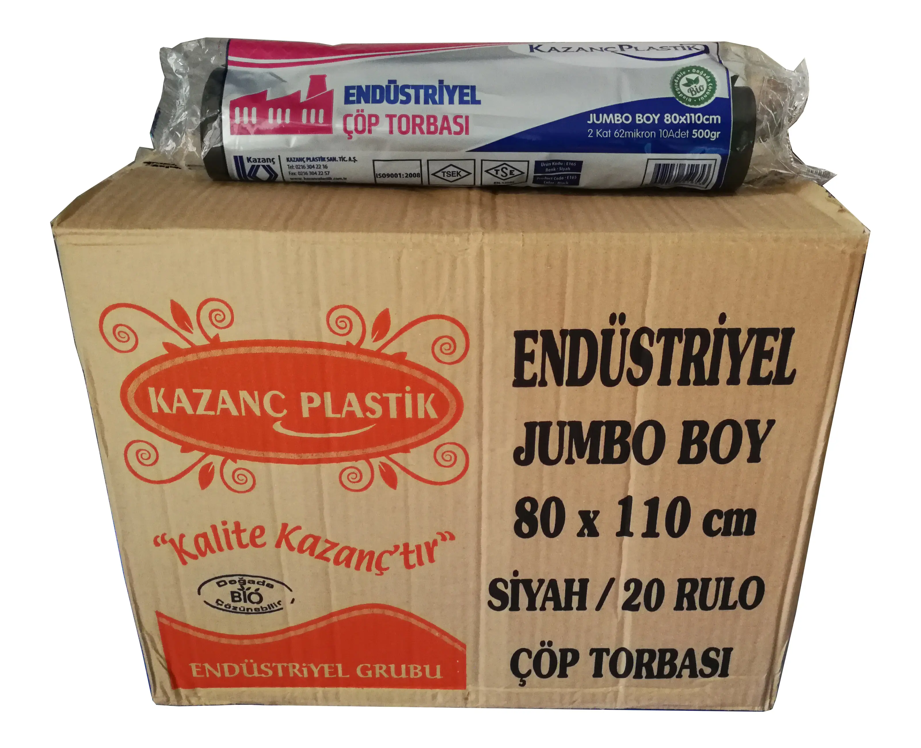 | Etiketler | Kazanç Plastik Endüstriyel Jumbo Çöp Torbası Poşeti 2 Kat Siyah 62 Mic. 500 gr 80 x 110 Cm. / Koli |