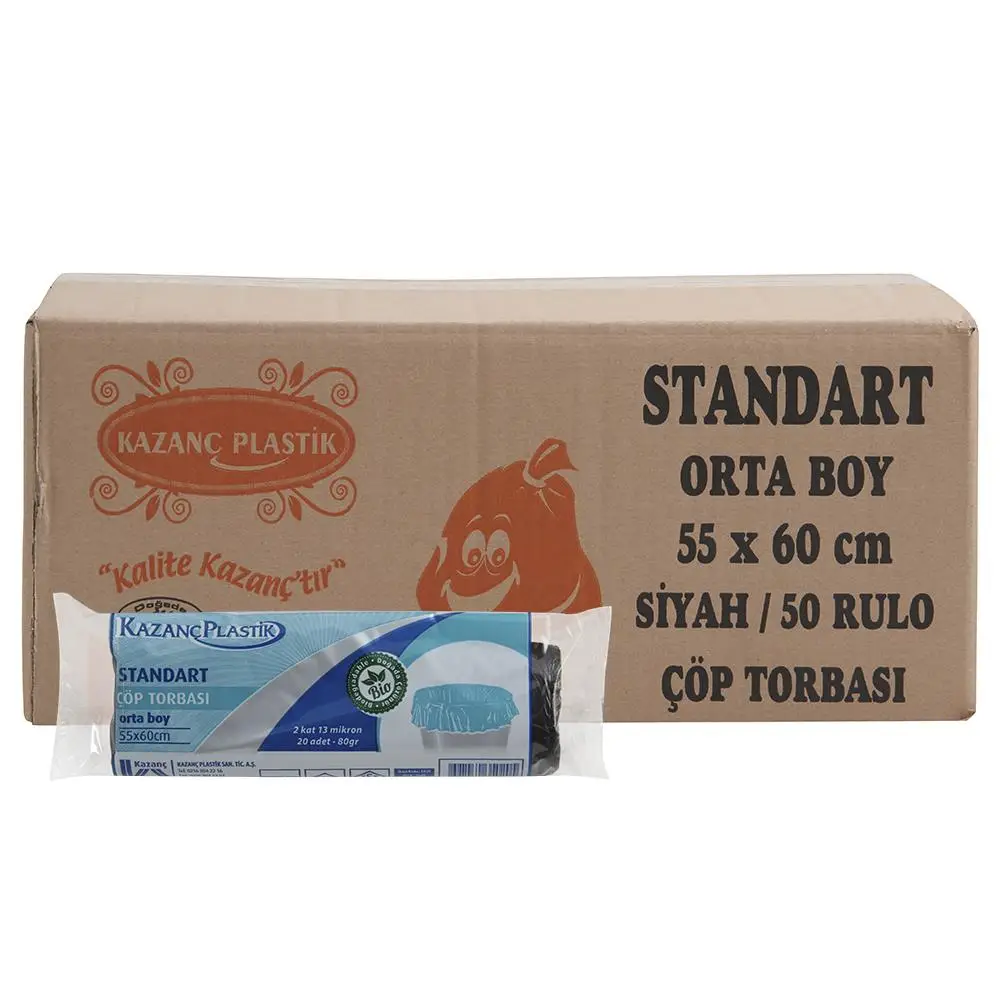 | Etiketler | Kazanç Plastik Ev Tipi Standart Orta Boy Çöp Torbası Poşeti 13 Mikron - İnce / 55x60 Cm / 20 Adetlik 50 Rulo / Koli |