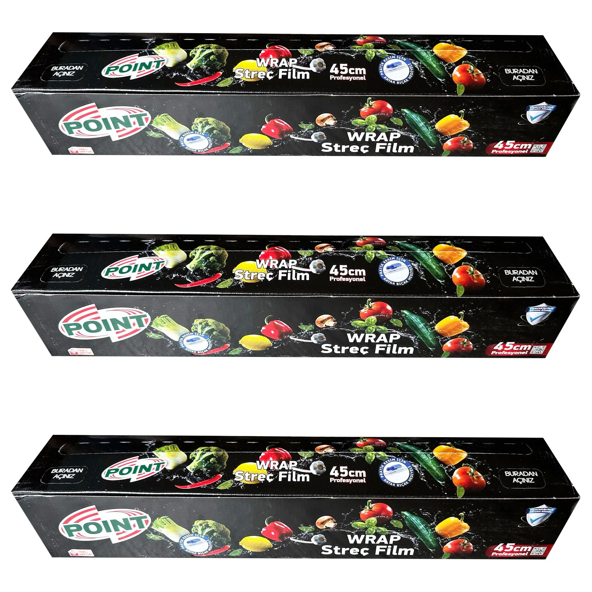 | Etiketler | Point Şeffaf Mutfak Rulo Streç Film Folyo - 45 Cm. x 250 Metre - Gıdaya Uygun - 3 Paket |
