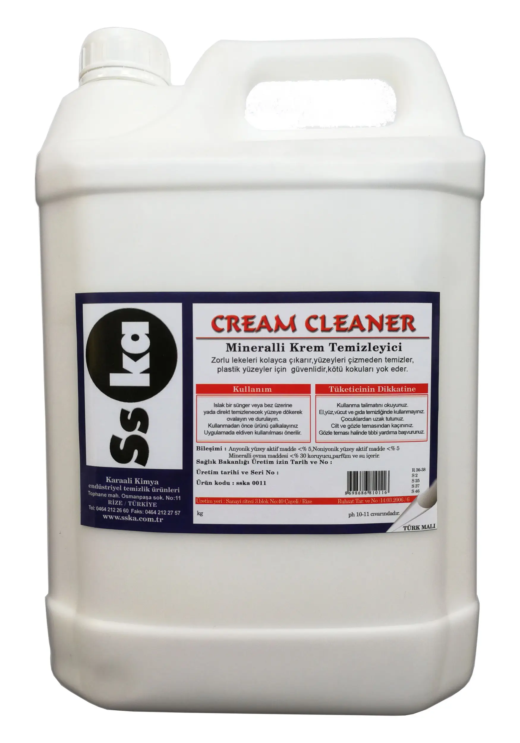 | Etiketler | SSKA Mineralli Sıvı Ovma Maddesi / Krem Temizleyici / 7 Kg. / Bidon |