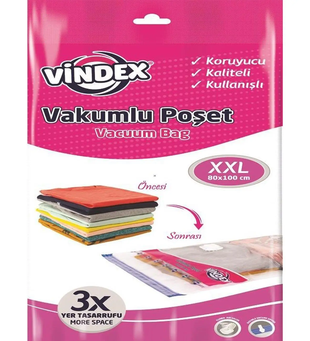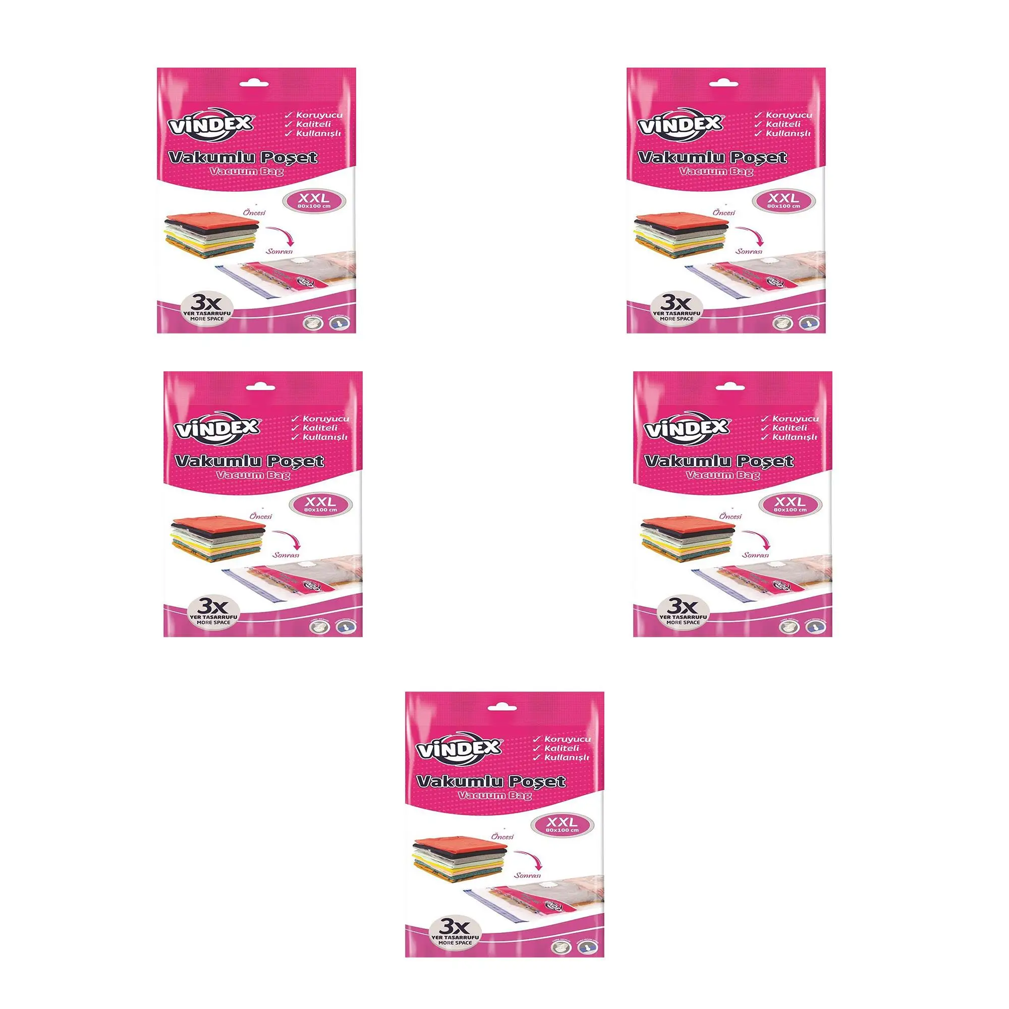 | Etiketler | Vindex Vakumlu Giyisi Yastık Yorgan Saklama Torbası Poşeti Hurç - XX Large - 80x100 Cm. - 5 Paket |